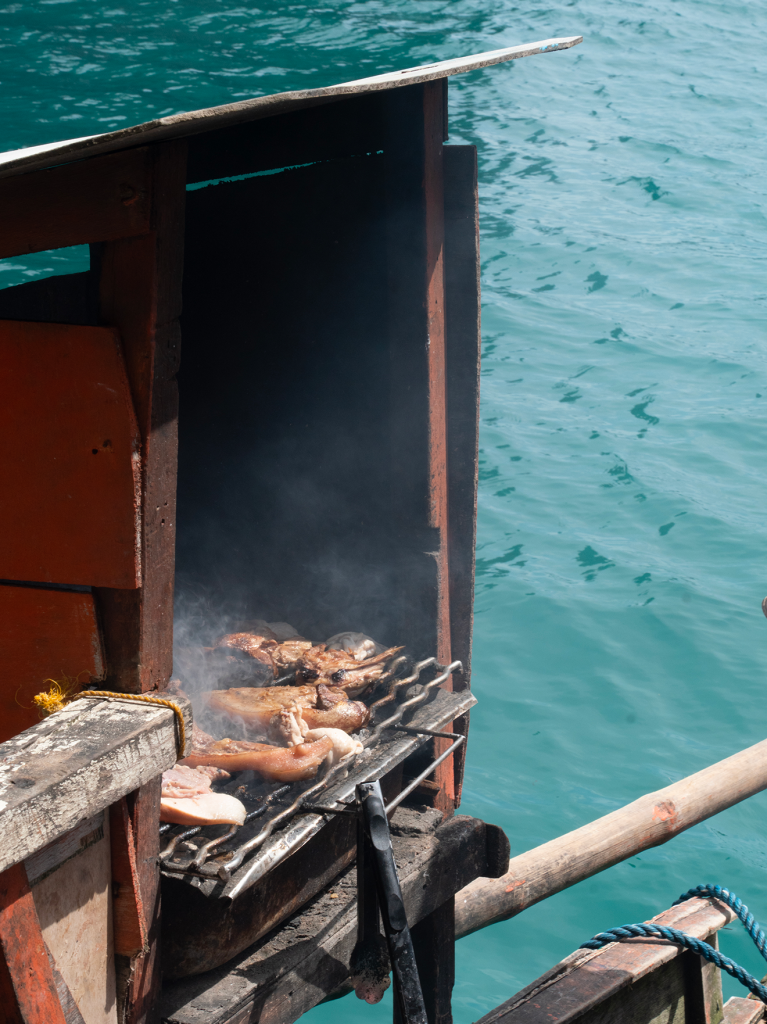 Nous avons encore une fois choisi de privatiser un bateau. Le matin même nous avons rejoint notre capitaine sur le marché et avons choisi toute la nourriture que nous voulions manger et c’est lui qui se charge de la cuisiner, un bonheur (course à notre charge)