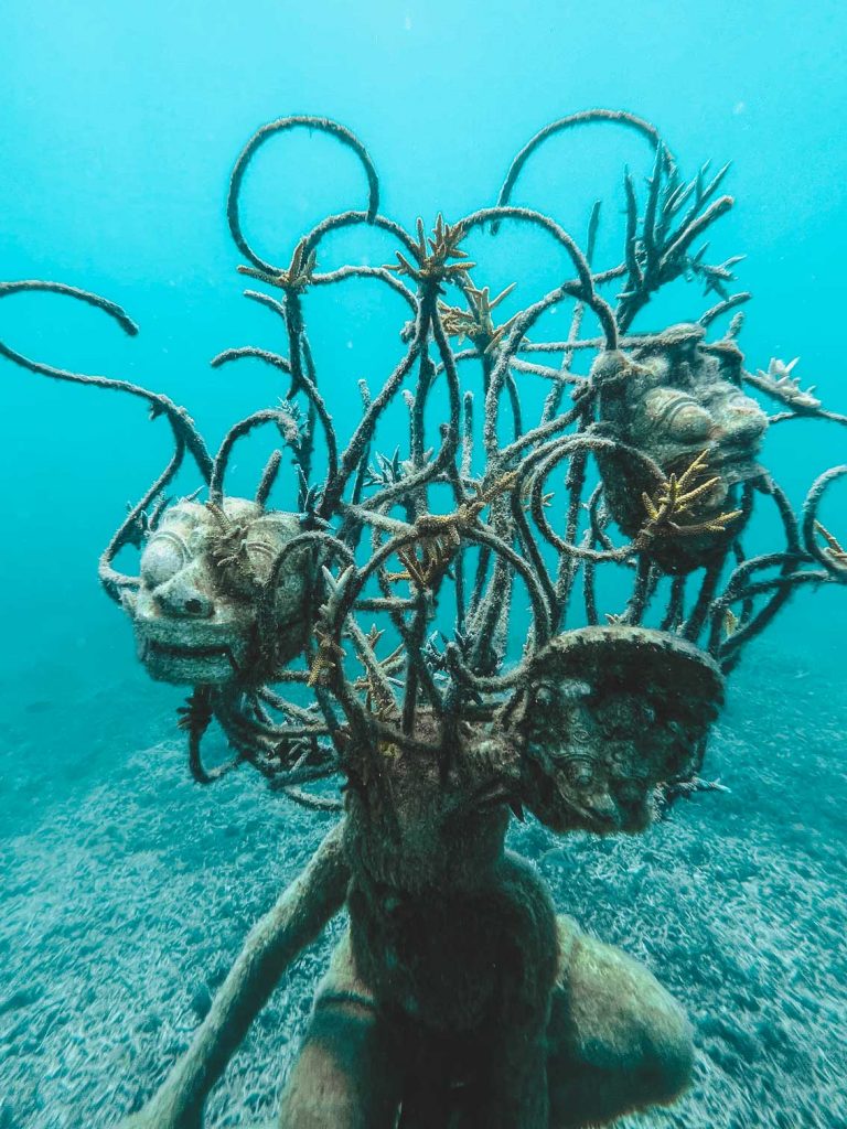 Les statues sous l’eau de l’autre côté de l’île « Bask nest » sur Google maps. On y est allé à 7h du matin et il y avait déjà quelques personnes ! Alors allez y tôt ! 🐠