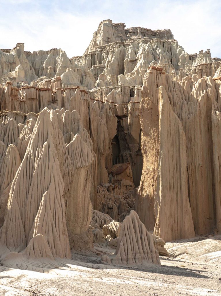 Puis nous nous enfonçons sur des pistes au milieu du désert, honnêtement, il faut connaître la route ! Nous arrivons finalement à « La Ciudad del Encanto » (la ville de l’enchantement). Nous découvrons un paysage de gigantesques stalagmites de sable, formées par le temps. C’est vraiment incroyable !