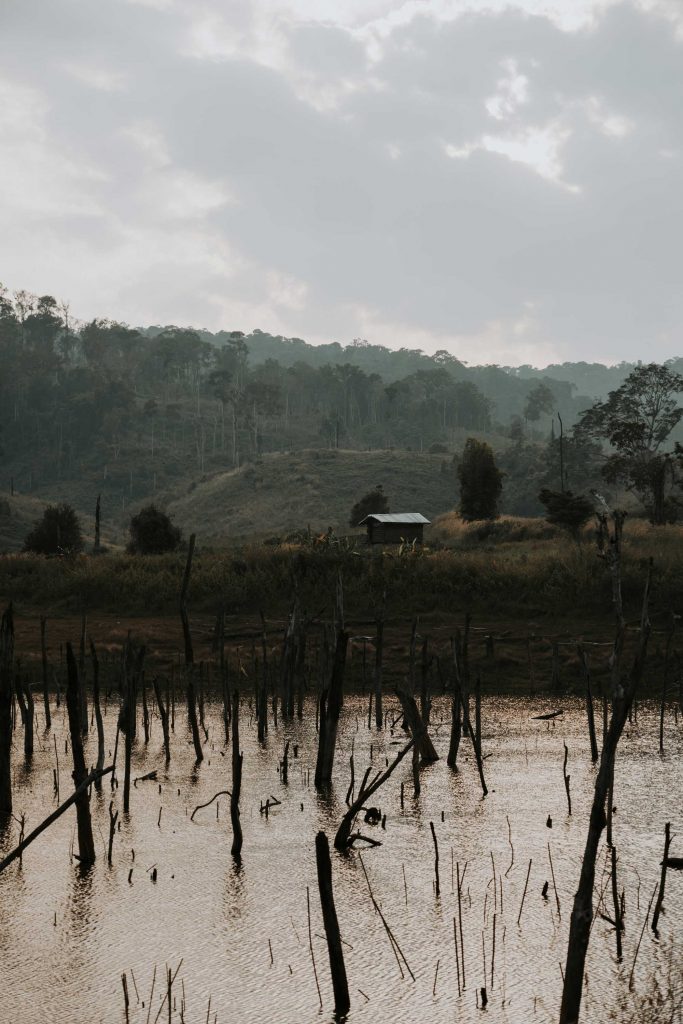 Déposez les affaires au lodge et reprenez la route pour quelques kilomètres. On vous conseil de partir vers 16h30 et de partir voir le soleil se coucher sur les arbres inondés par le barrage, il y en a des champs un peu plus bas sur la route est, c’est incroyable. 🌅